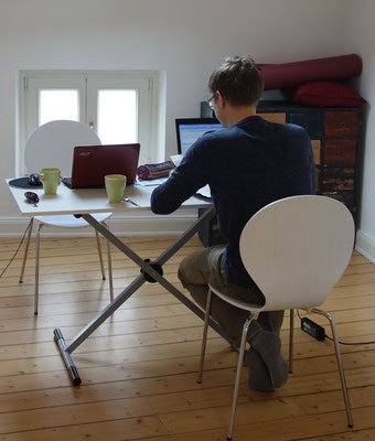 Im Eltern-Kind-Büro hingegen werde ich motiviert, endlich mit der Arbeit anzufangen, wenn Emilia schläft oder gerade gut betreut ist. Die Zeit, die mir dann zur Verfügung steht, nutze ich effektiver wegen des Beispiels der anderen arbeitenden Eltern neben mir. Irgendjemand hat auch schon Kaffee und Tee gekocht. Es gibt also keine Ausrede mehr, nicht zu arbeiten. Wir sind Dienstag und Mittwoch vom 9:00 – 14:30 Uhr im Büro, in dieser Zeit arbeite ich im Schnitt zwei Stunden.